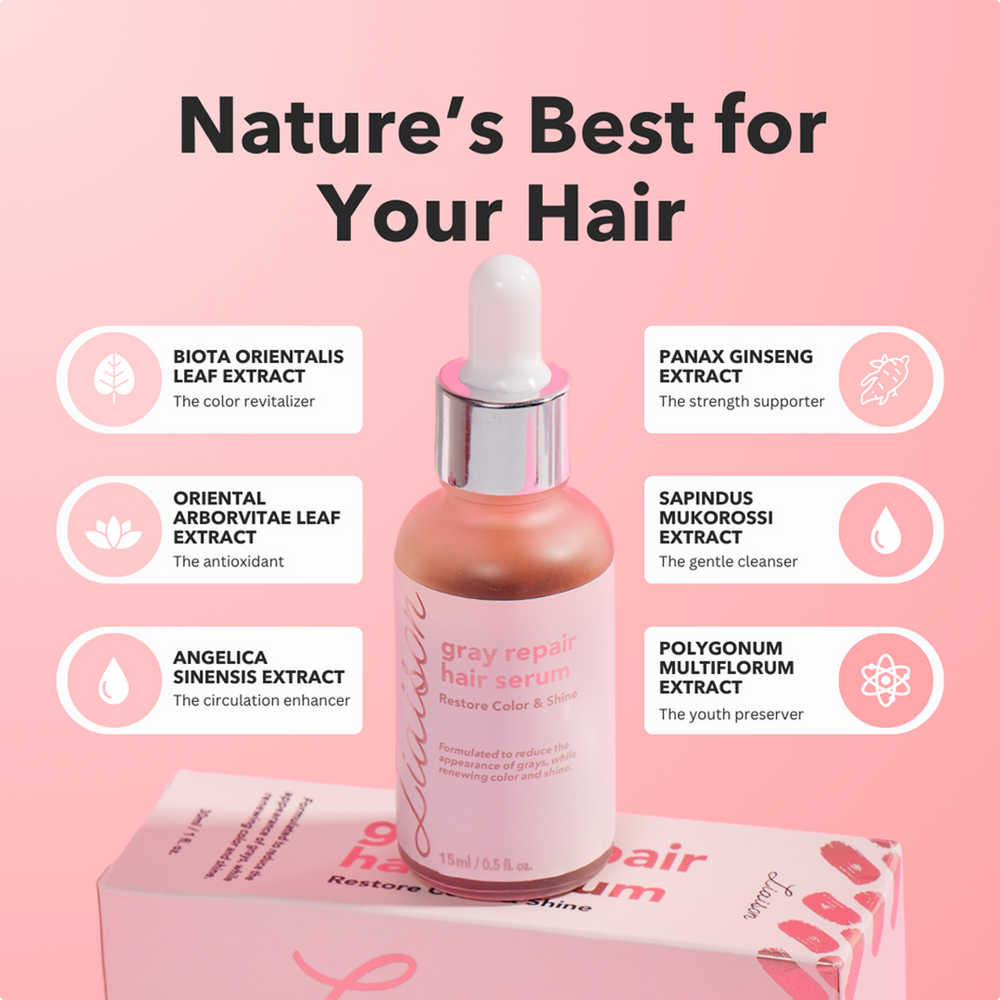 The Gray Repair Hair Serum has been a lifesaver for my aging hair. It's easy to incorporate into my daily routine, and the results speak for themselves. My hair has more color and vitality, and I'm no longer worried about frequent touch-ups. Highly recommended!